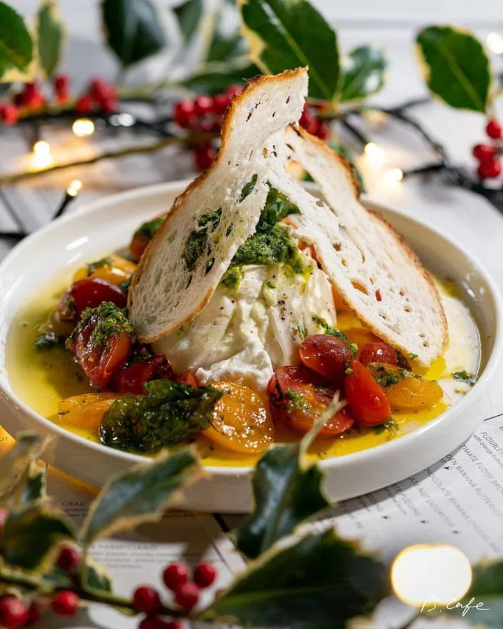 For appetisers, think Crab and Prawn Cakes ($22++) topped with salsa tropika, Christmas Oyster Shooters ($15++) that combines fresh oysters from Japan with tomato salsa, orange ponzu, and grated radish, Grilled Half Shell Scallops ($16++), and Burrata Caprese ($24++), a refreshing salad with charred tomatoes and sourdough crisps.