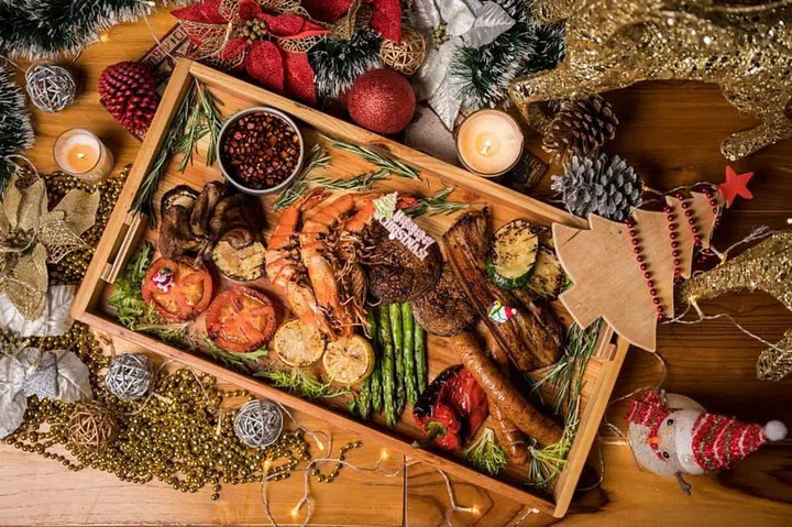 For a restaurant suited for all members of the family (yes, including furbabies), take a trip down to Reddot Brewhouse to indulge in a traditional Christmas feast. Its festive menu consists of Love Bundle Festive Platter ($128), a tray filled with jumbo prawns, lamb rack, pork belly, grilled portobello mushroom homemade sauce, and much more; and Merry Turkey ($24), a pan-seared turkey breast with king oyster mushrooms and beetroots. To top it all off, the Jingle Bells dessert ($15) ends the meal on a delightfully sweet note with apple cheesecake topped with fresh fruits.
