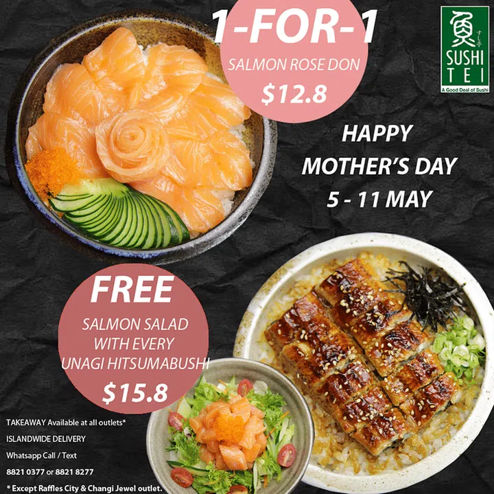 Between May 5 and May 11, Sushi Tei is running a salmon-loaded Mother’s Day promotion.