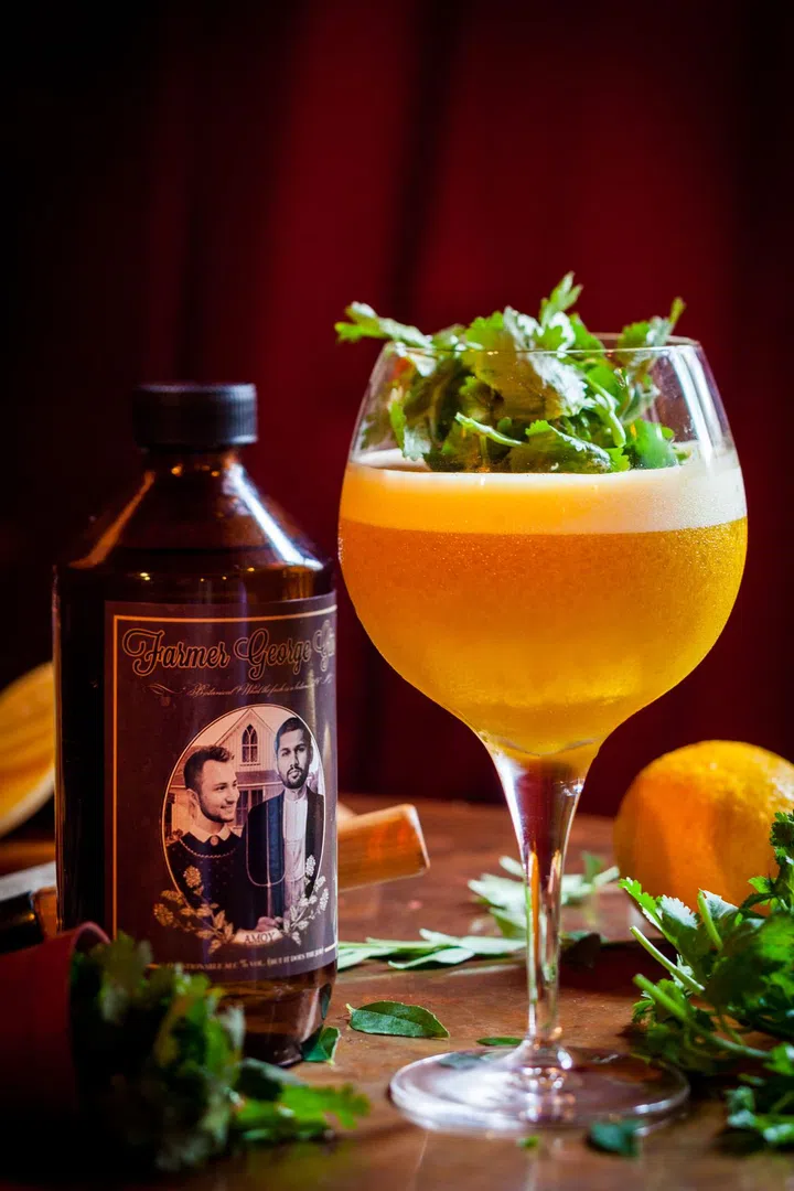 Key Ingredients: Gin with curry leaves and turmeric, mango syrup, fresh lemon, cardamom, egg white, tonic