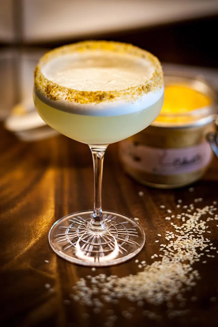 Key Ingredients: Bacardi carta blanca, toasted sesame syrup, rice water, fresh lemon juice, egg white