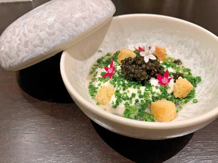 Unlike restaurants that have signature dishes, here things are switched up every month by Chef Helou, a Singaporean with Lebanese, Japanese and Chinese parentage. This endeavour requires him to push harder for creativity and inspiration each time, resulting in original dishes like somen in a dashi broth, with Hokkaido fruit tomato and basil oil; and buckwheat chawanmushi with shiro ponzu and wasabi oil, a take on cha soba.