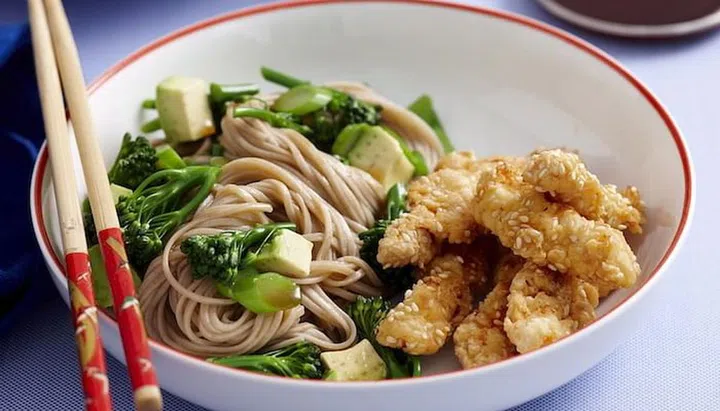 Sesame-coated chicken is delicious and easy to make. Serve it with a yummy bowl of soba noodles for a wholesome dinner or lunch.