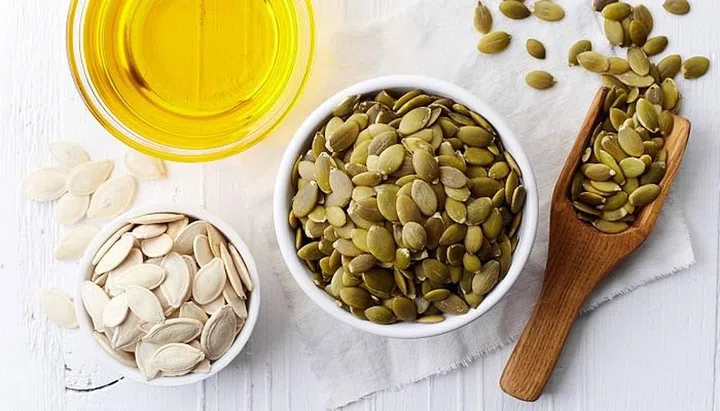 High in magnesium, iron and zinc, pumpkin seeds are a natural way to boost your mood, lower cholesterol and burn fat. Zinc helps the body produce the muscle forming and fat burning hormone testosterone. It also increases lean muscle mass and keeps your blood sugar steady.