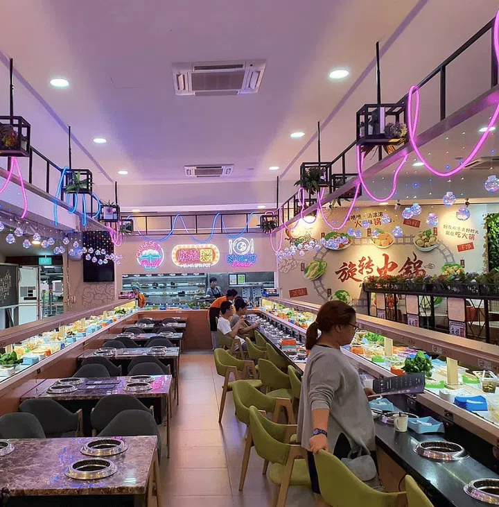 There’s nothing better than hot pot when it’s raining and you’ll get served via a conveyor belt at Ma Ma Spin Pot.