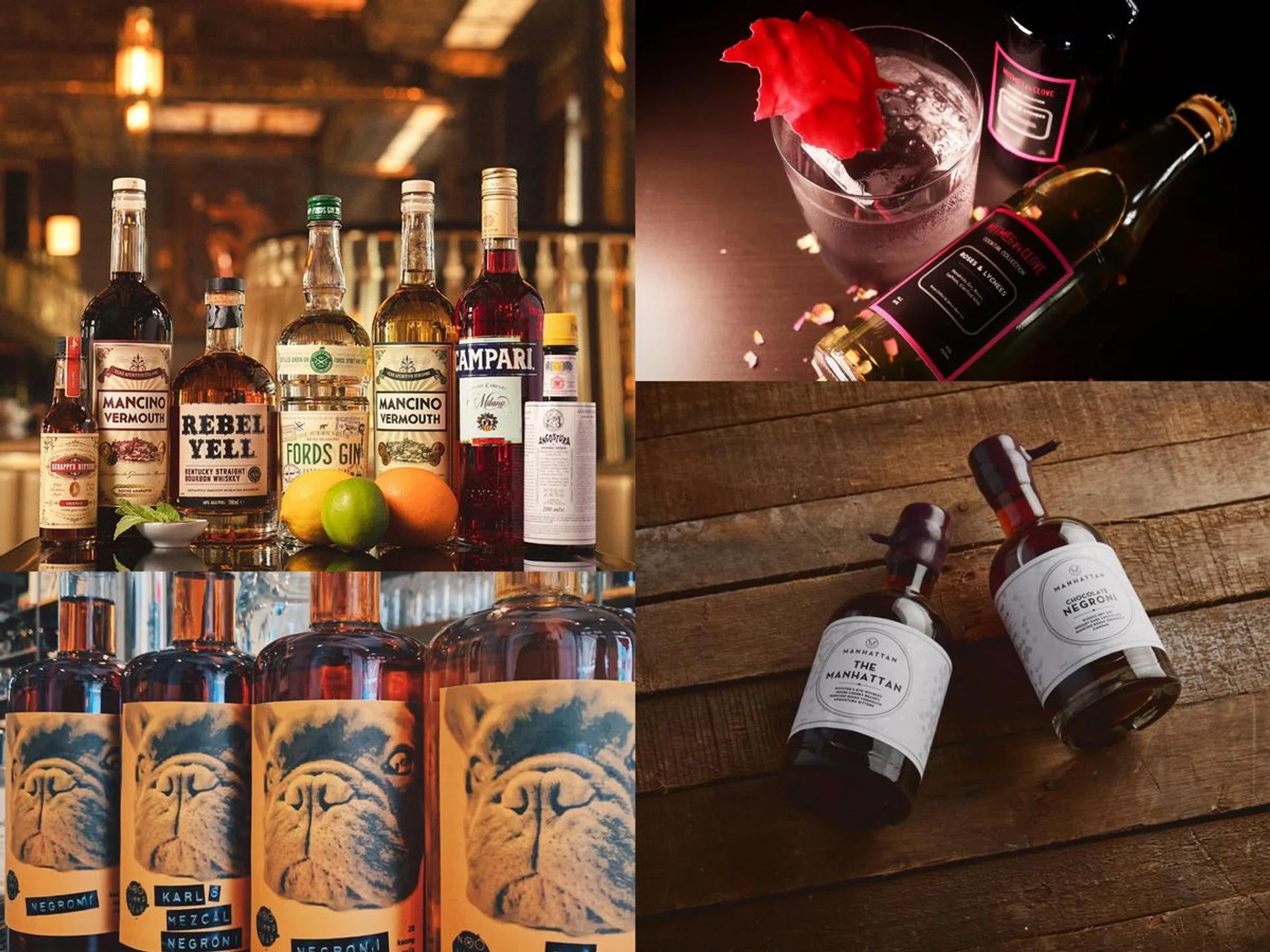 They are Chrissy Negroni, made with chrysanthemum gin; Roses & Lychees, a milk punch made with gin, roses and lychees; Smoky Rum Old Fashioned, made with a blend of rum and Islay whisky; and Symphony, made with cognac, rye whiskey, black tea and Chinese herbs.