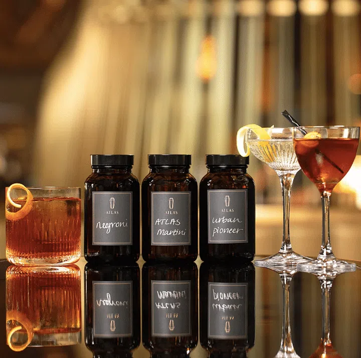 Besides bottled versions of its signature cocktails like the Atlas Martini, Negroni and the gin and coffee-based Urban Pioneer, the bar at Parkview Square is also delivering home cocktail sets comprising gin, whisky or both, as well as modifiers, bitters and garnishes. There is an option to add on a full set of rose gold bartending tools ($480).