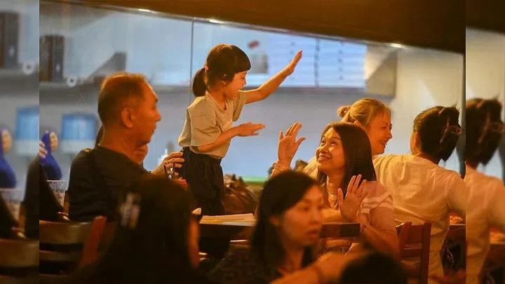 Young restaurant patron, Riley Chua, five, dancing on a table with her grand-aunt Ms Sally Lim, 60, to the music of local band O.K READY!