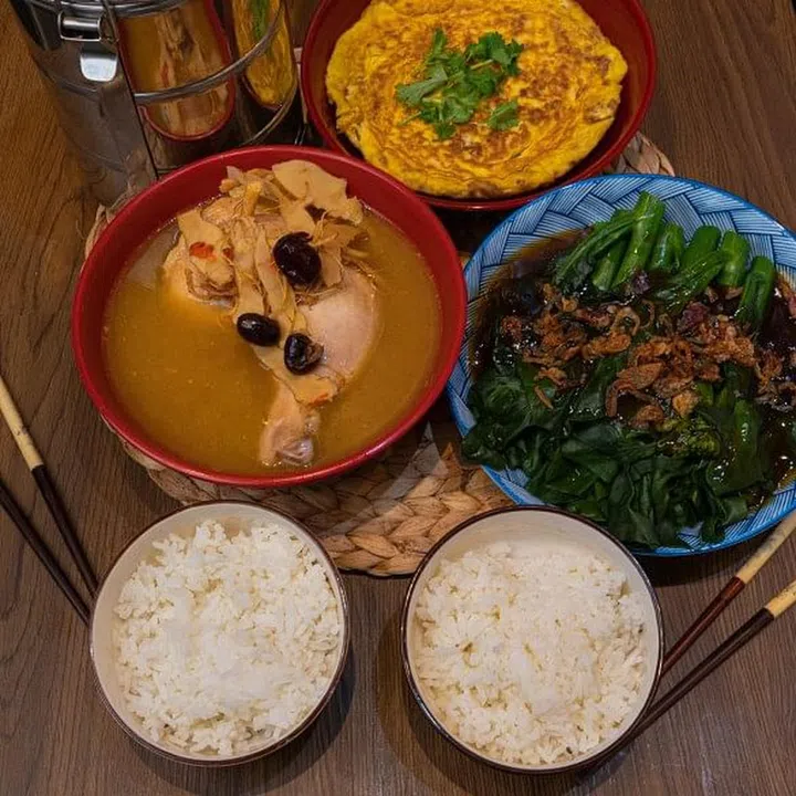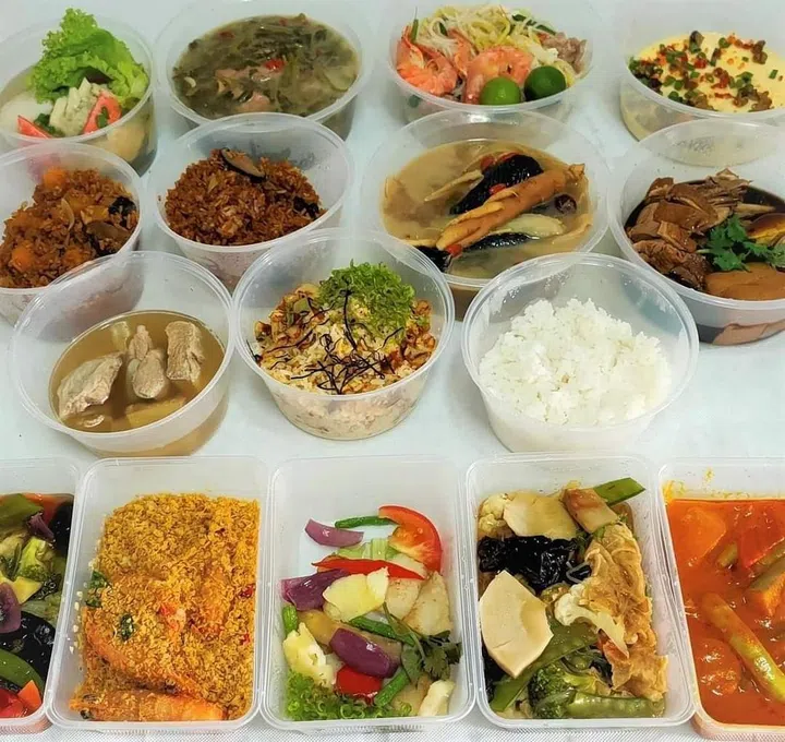 The company offers lunch and dinner packages, as well as a normal and healthy meal tingkat. The main difference is the latter package includes a soup, and dishes are prepared with healthier cooking methods such as steaming.