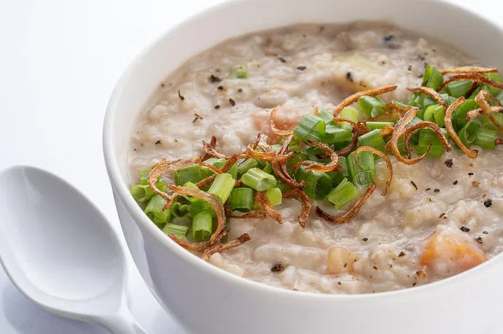 Bubur lambuk is a rice porridge with a variety of ingredients, among them sweet potatoes, prawns, beef, and herbs. This dish is also traditionally served free by Mosques to the public during the breaking of a fast after sunset but can be eaten during Hari Raya itself too.