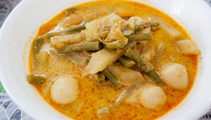 This spicy soup noodle always makes a showing as you trek from open house to open house during Hari Raya. In Malaysia, particularly, the type of laksa served can denote which state the family hails from. If Assam laksa is served, the family comes from the northern states (Penang, Kedah) while if curry-based laksa is served, the family hails from down south (Melaka or Johor).