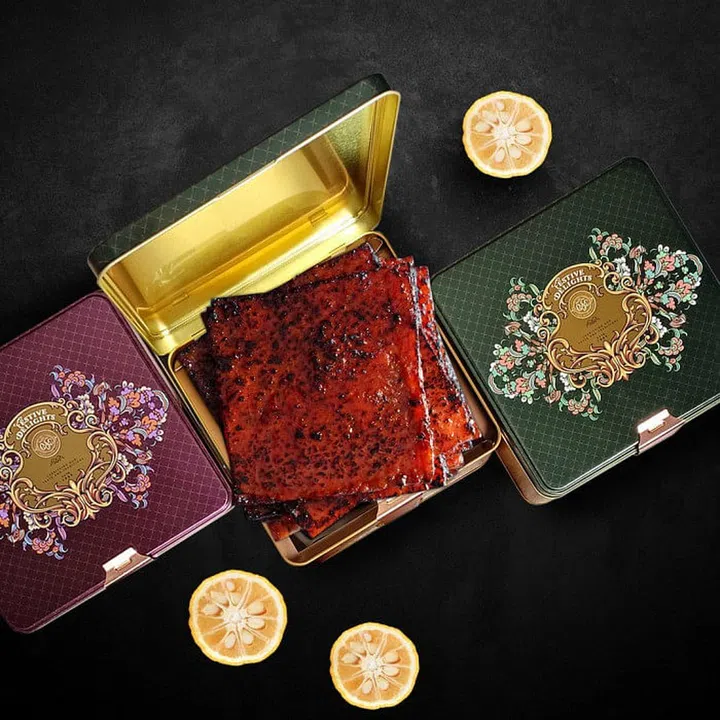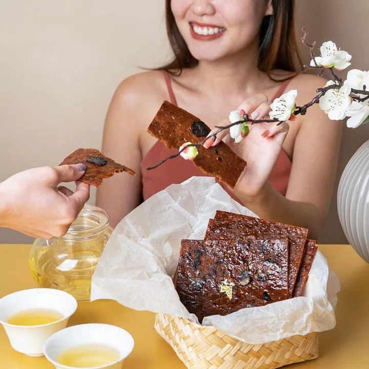There’s more: Presented in a woven basket, the bak kwa is also decked with edible gold leaf for an extra luxe touch.