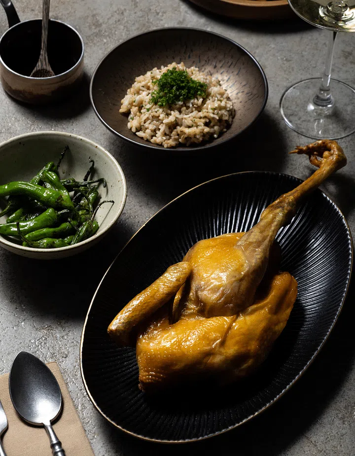 The Aquina ½ Organic Chicken is a favourite; the chicken is aged to perfection for seven days to achieve unparalleled tenderness and flavour. Served with charred scallions, this dish promises a smoky, succulent experience. We’d recommend pairing it with sides such as the Koshihikari rice and Maitake mushroom for a comforting and hearty meal.