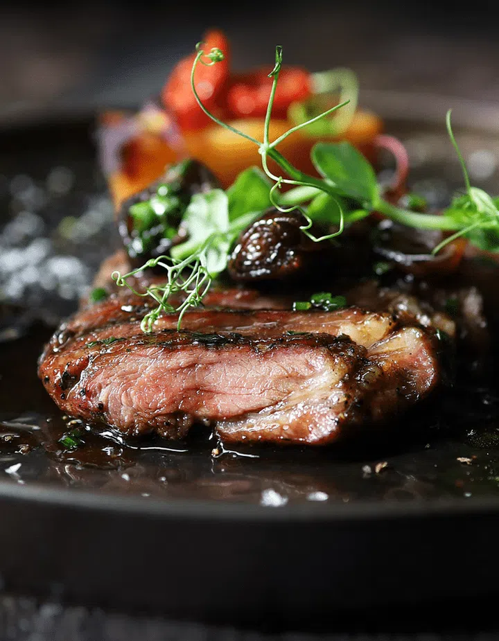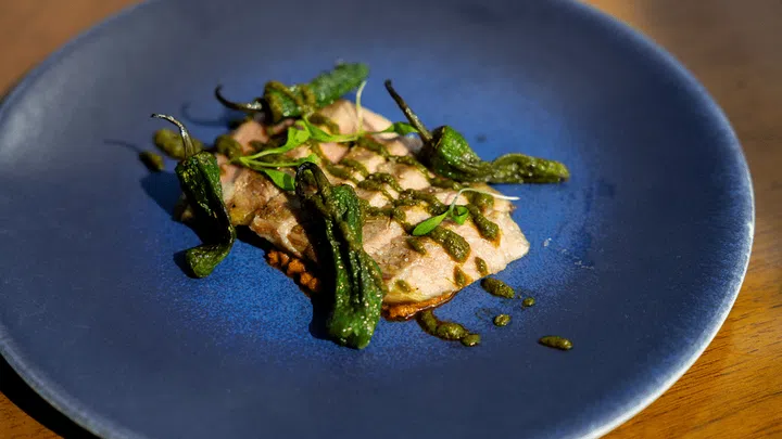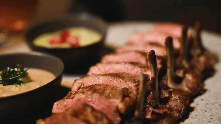 Options for the mains include the Sweet Vine Peppers, stuffed with halloumi and served in a shakshuka-esque jackfruit "keema" sauce, or opt for the Lamb Porterhouse with Ottoman spice rub and celeriac. For a carnivorous delight, try the aromatic USA Prime Ribeye with black garlic toum and pickled chicory, or indulge in the Black Hog Tomahawk, brined with orange juice and spices, then dry-rubbed with Urfa biber chili pepper, and topped with chermoula sauce.
