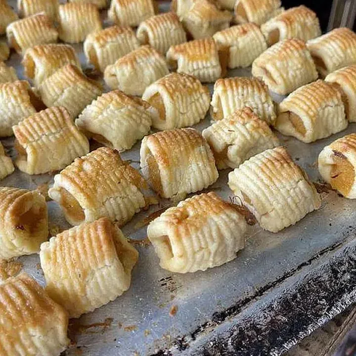 The pineapple rolls (which are referred to as “round ones” at the shop) cost RM22 for a box of 24 pieces. The ribbed crust is powdery and buttery. The open-faced pineapple tarts with a crispier crust cost RM22 for a box of 20 pieces.