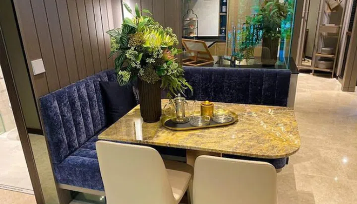 Another “clever” trick that interior designers will use is to play around with the furniture. For example, you will see smaller condo units having their dining table flush against the wall or pushed all the way to the corner. This creates the illusion of space in common areas. If you are comfortable with bench seating, this would be no issue, but for most people, they only realise this after moving a round dining table in, and wonder where all the space went.