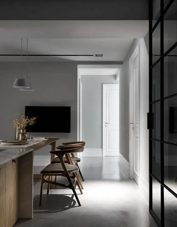 The furniture was carefully chosen so that the lines would reflect the simplicity of the interiors.