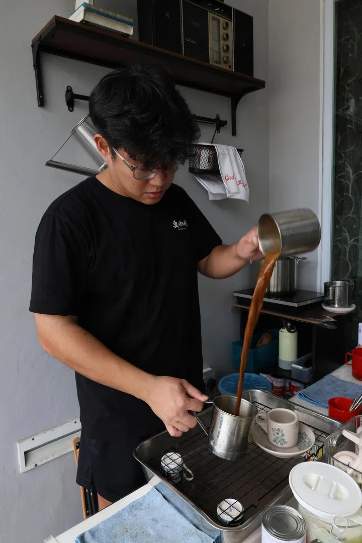 Mr Glenndon Khoo makes Nanyang kopi at home cafe Knead Kopi.