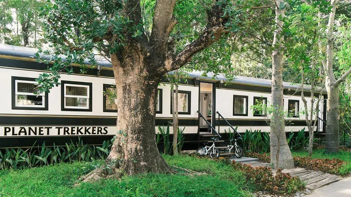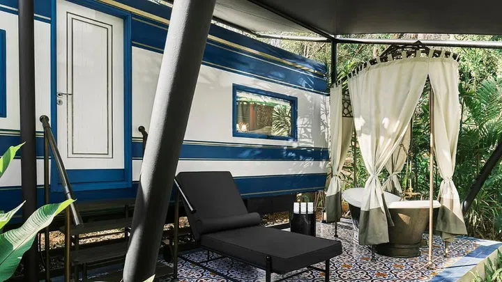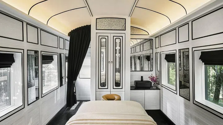 The resort features 45 rooms and 19 suites and villas, of which 11 of the suites and rooms offer private outdoor pools, including a series of upcycled Thai train carriages that have been converted into luxury accommodations.