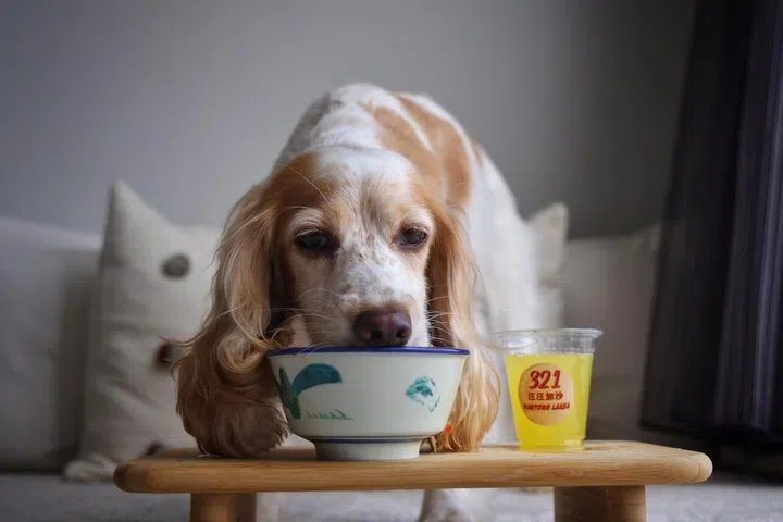 Ms Wong’s cocker spaniel Mochi enjoys her bowl of Pawtong Laksa (Katong Laksa).
