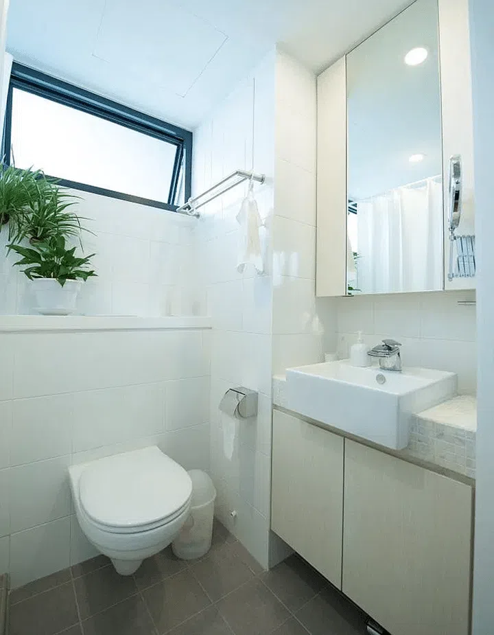 As the bathrooms in the apartment had limited floor space, the interiors were kept white and bright to prevent it from looking claustrophobic.