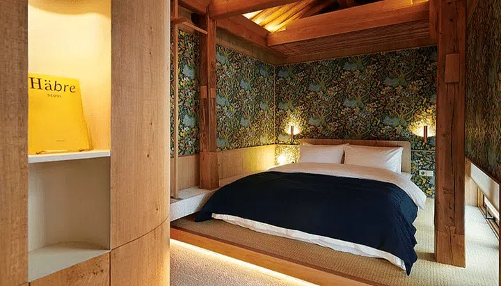 And for a fresh decor twist, Habre is tastefully inspired by Scandinavian aesthetics, such as floral themed Swedish wallpaper and streamlined Danish furnishings, most of which are vintage. With a dining area and kitchenette as well as a cosy elevated nook for the bed, this hideaway already feels like home, which is exactly the point of it all.