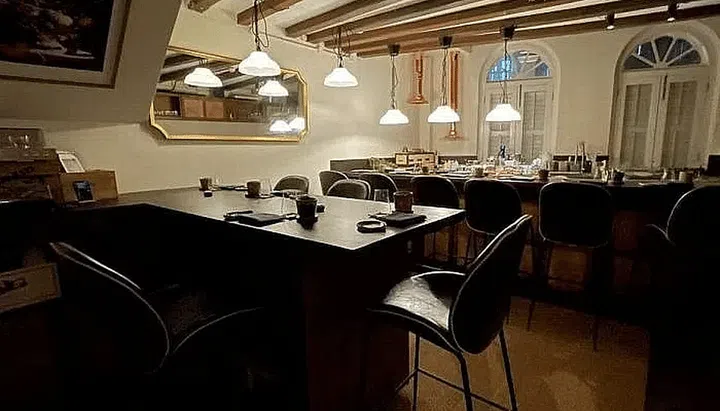 The first floor features a bar serving a full menu of food and drinks, while the second is occupied by a private lounge reserved for chartered members, as well as for workshops and other events. On the third and top floor is a cellar storing barrels of spirits owned and customised by chartered members.