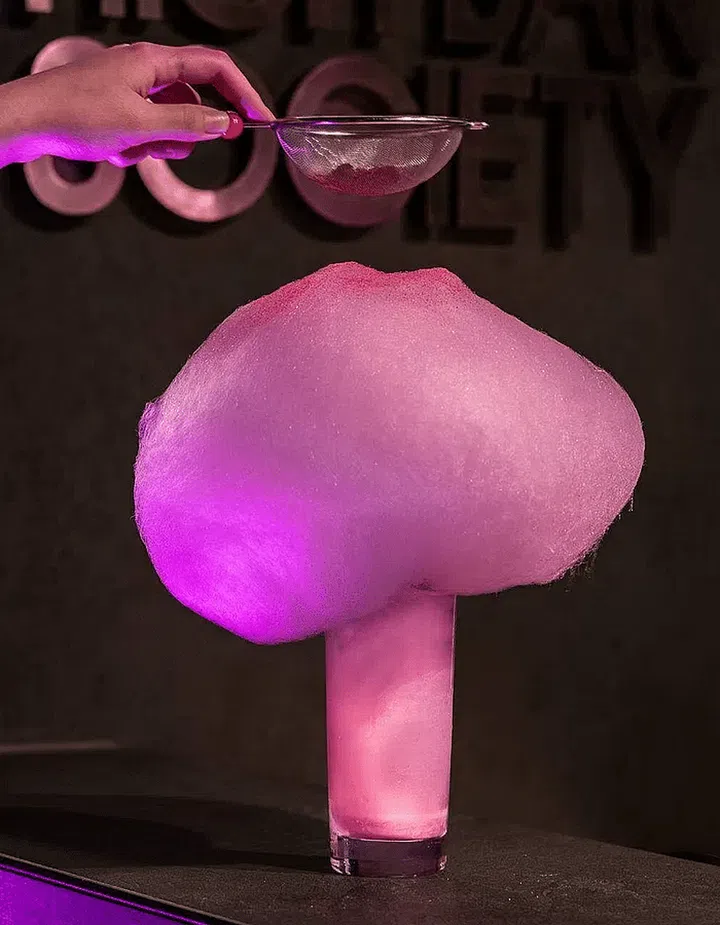 The concoctions include one called Barbie’s Pink ‘Fro ($23), which Tay describes as “a highball float that comes with cotton candy, whisky, soda and cotton candy gelato”.