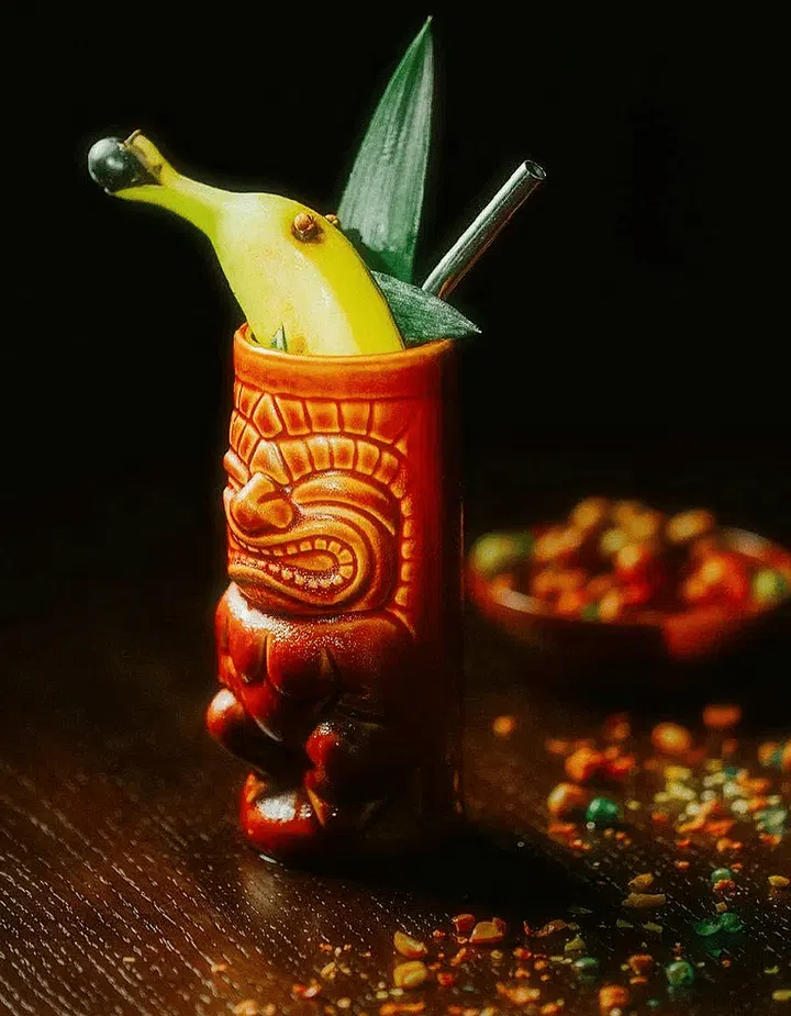 Another drink is the Endolphin – which comes with half a banana decorated to resemble a dolphin – featuring rum infused with chocolate, blueberry, almond, orange and banana.