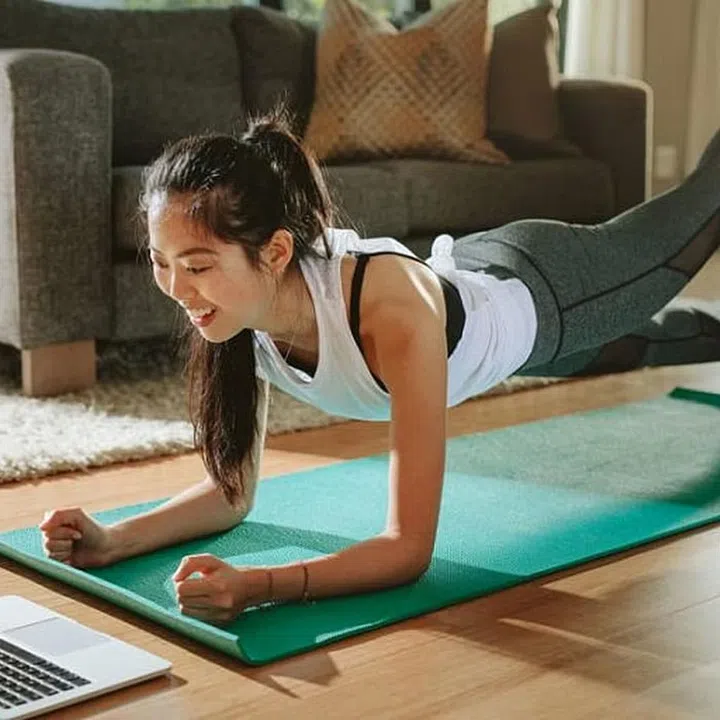 Make sure you have enough space all around you. Front, back, left, and right! You will have to jump around, get on the floor, and move in all directions during your workout and you don’t want to have to stop because you banged into something.