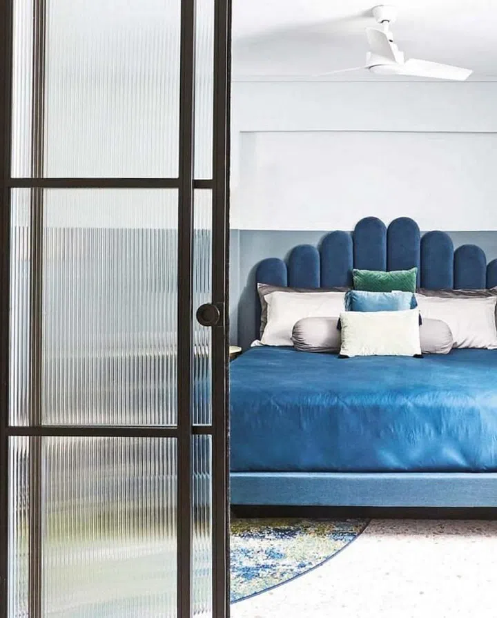 The remaining two bedrooms were combined to create a master suite with a walk-in wardrobe and a bedroom separated by a fluted glass sliding door. Both are minimalist to create a conducive ambience for rest.