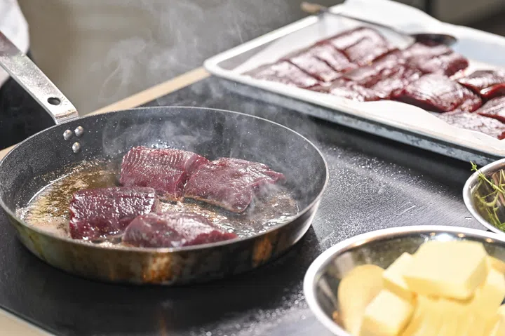 It is also sold as a striploin steak ($149 a kg), which can be seared in a pan, or osso bucco ($49 a kg) – a cut that is best simmered in broth or slow-cooked overnight.
