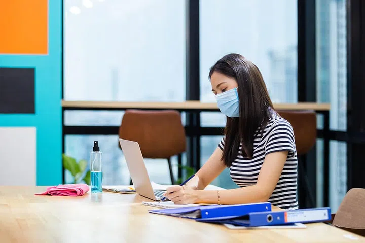 To reduce interactions between workers, working from home has become the default arrangement, and socialisation between workers is forbidden. Masks have to be worn at all times while at work.