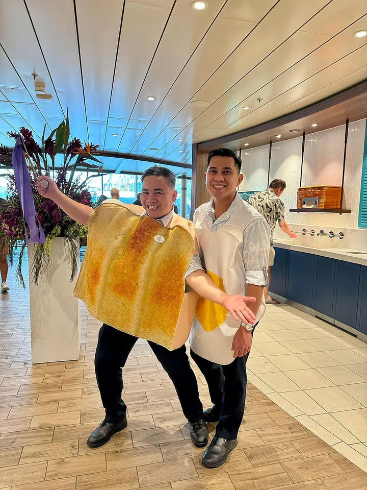 When at the Windjammer, look out for the cheery Argel Arenas (left) and Jay Estores, who will remind you to "washy-washy" your hands before entering the restaurant. Photo: Chelsia Tan
