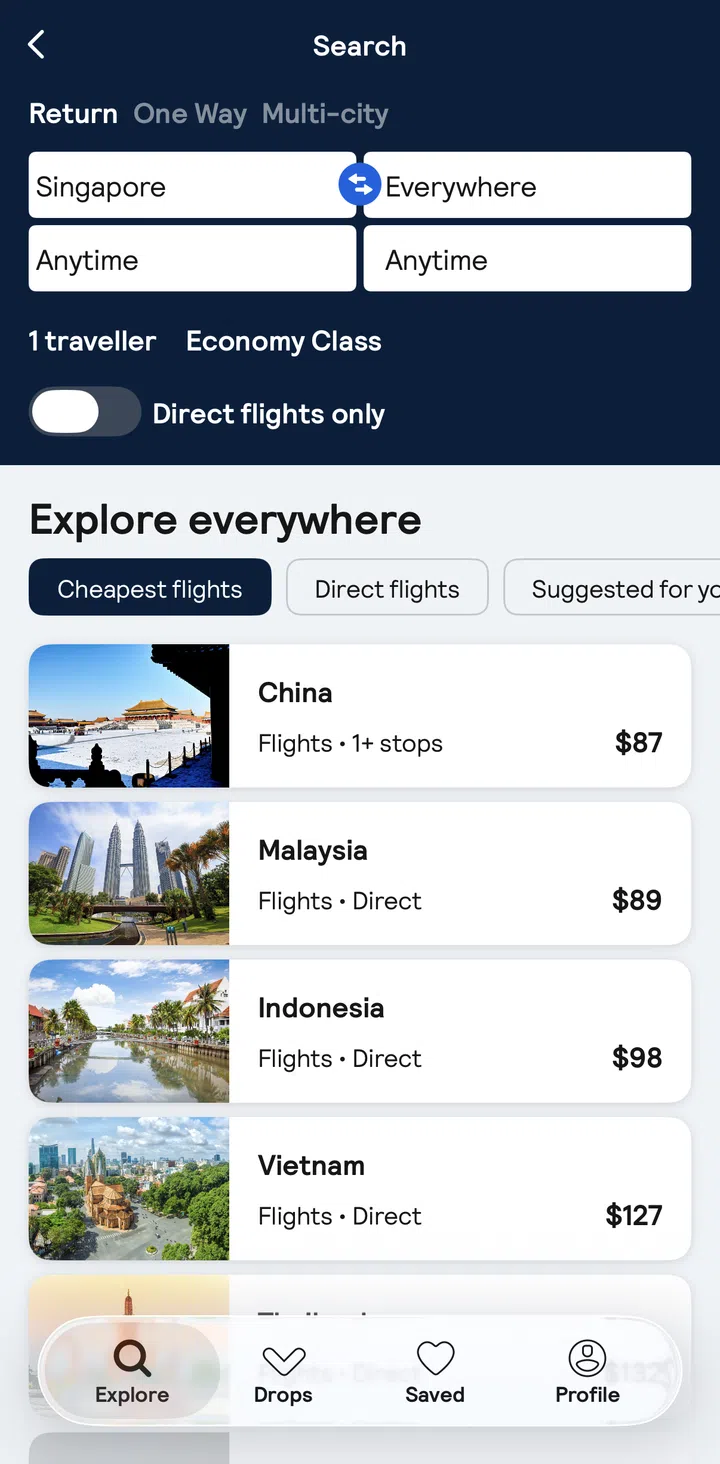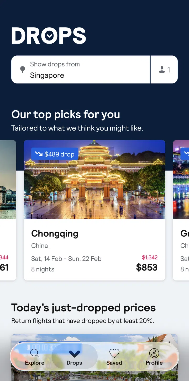With the Drops feature, you’ll get notified when flight prices unexpectedly drop by at least 20%, with deals updated hourly so you always see the latest offers. By constantly scanning flights, Drops helps you snag last-minute or short-trip fares at unusually low prices.