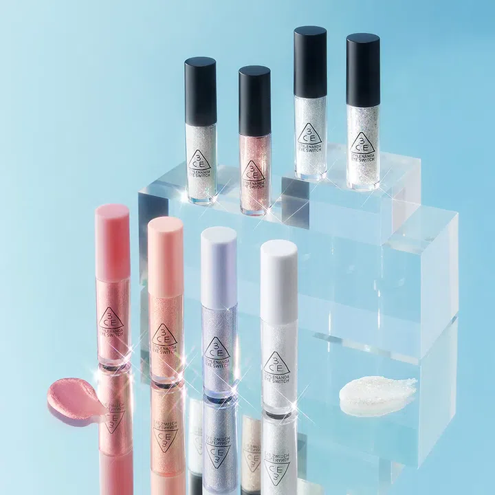 Min-gee adds a touch of sparkle under her eyes to complete her makeup, using 3CE’s Eye Switch. Its liquid formula is packed with chunky glitter particles that catch the light, creating a luminous, eye-catching finish.