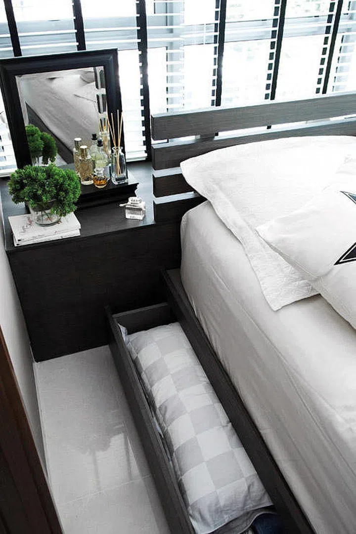 Free up the precious wardrobe space in your bedroom by getting a bed frame that has drawers built into its base. This ensures that your extra sets of pillows and bed linens are neatly tucked away yet easily accessible.