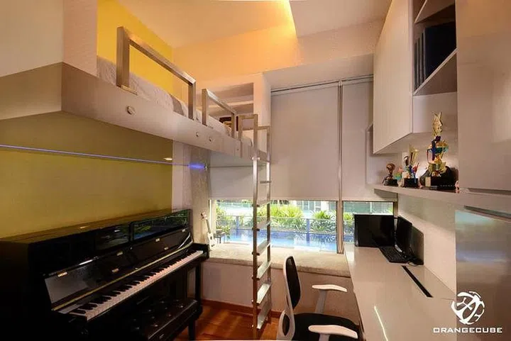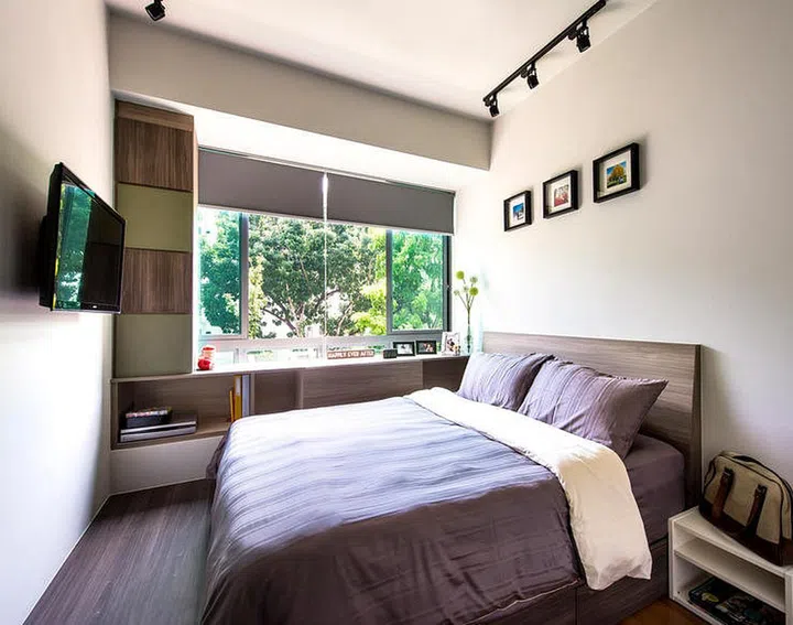 Embrace your bedroom’s bay window like this homeowner did by customising horizontal shelves and vertical cabinets upon it. This way, you can have additional storage without obstructing much of the windows.