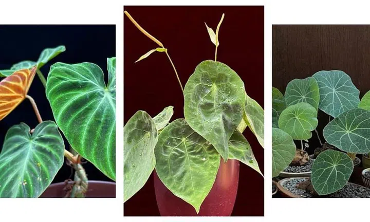 “Philodendron verrucosum varieties (left). Native to Central and tropical South America, this is a colourful Philodendron with velvety leaves. Some variants of this species come with the red colour on the backside of the leaf blade. It needs good humidity to thrive well.
