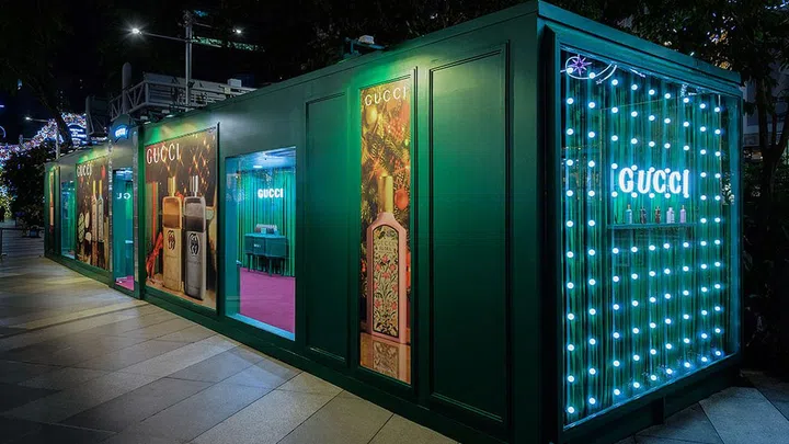 Gucci Beauty Holiday Pop-up is located outside ION Orchard.
