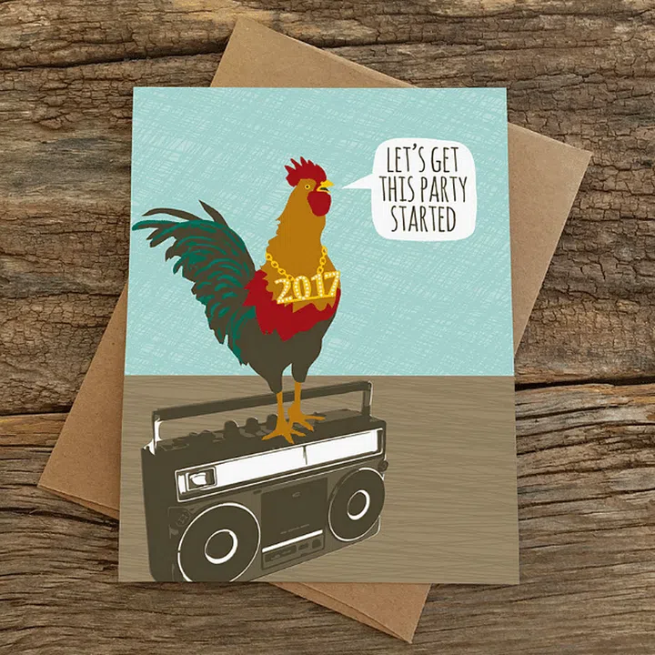 This whimsical greeting card is sure to put you and your friends in a festive mood for the Year of the Rooster. The East-meets-West design makes for a great decorative piece, too. Photo: Etsy