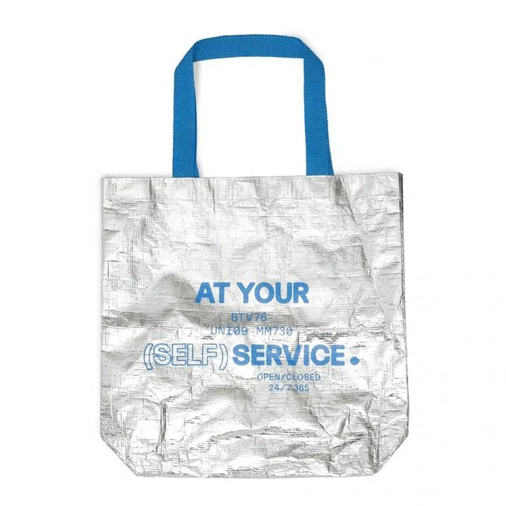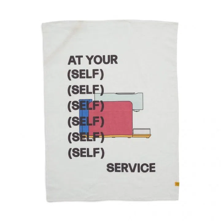 These utilitarian designs join other merchandise such as a tote bag, a linen tea towel and a metallic foil bag – with each item stamped with typography that plays on the name of the collection.