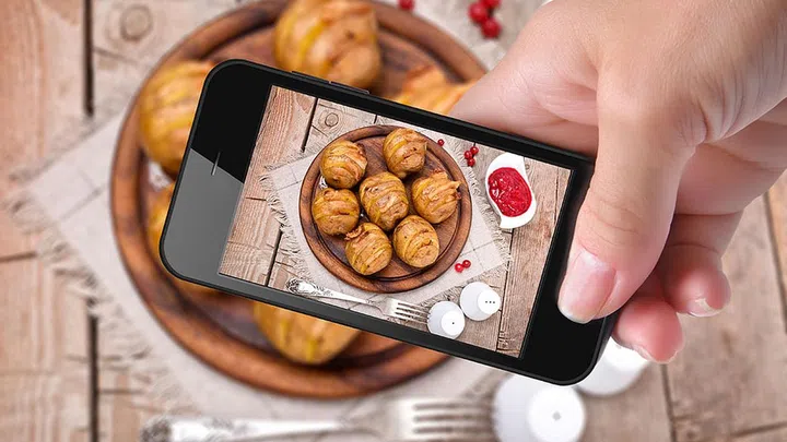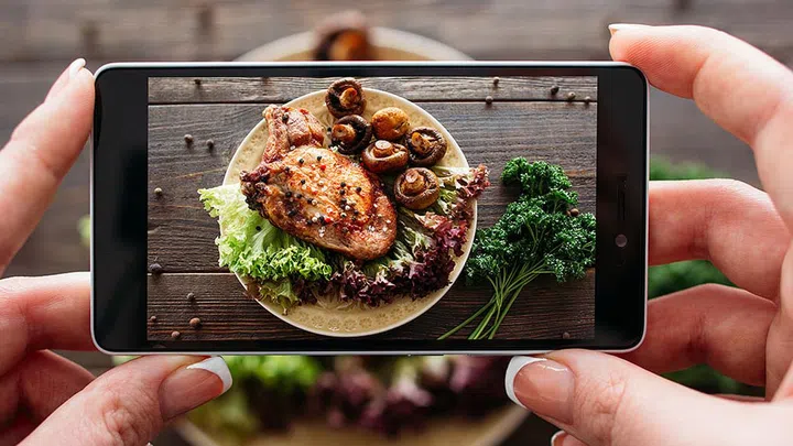 Phone cameras are not that good for taking macro shots so it is better to stand a few feet away from the dish that you are shooting. For the best shots, try snapping photos two to four feet away from the subject.
