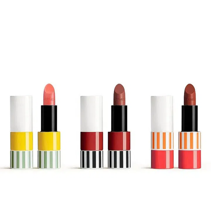 Dress your lips with three new collectable shades to the Rouge Hermes lipstick line, namely 06 Corail Parasol, 10 Beige Croisette and 22 Brun Yachting, to celebrate the Spring/Summer 2023 collection. The orange-pink, pink-toned beige and coppery brown respectively offer a radiant finish while being wrapped in a Pierre Hardy-designed stripped bullet design inspired by the bright, summery colours of a seaside scene.