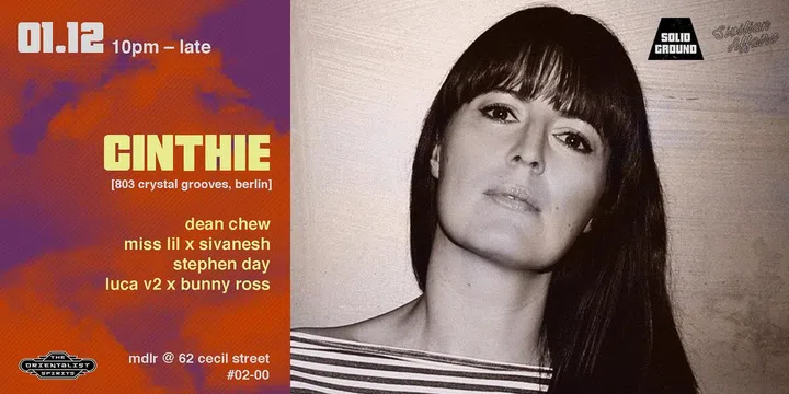 Joining Cinthie on this sonic journey are familiar names in Singapore's underground music scene, including Dean Chew of Darker Than Wax and Offtrack, Miss Lil, Sivanesh from Sivilian Affairs, as well as Stephen Day, Luca V2, and Bunny Ross from Solid Ground. Brace yourself for an evening that transcends boundaries, uniting enthusiasts and party-goers in a harmonious celebration of music and culture.