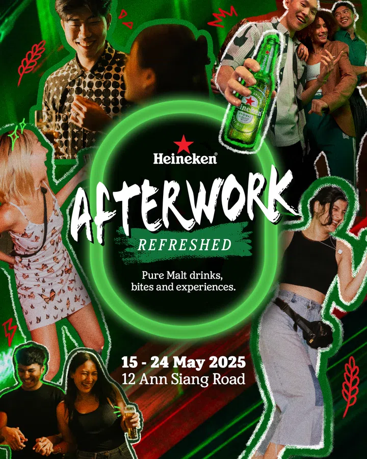 From 15 to 24 May, Heineken is taking over 12 Ann Siang Road with Afterwork Refreshed—a multi-sensory pop-up designed to remind you that clocking out should feel just as rewarding as clocking in. At The Ahhh! Bar, expect inventive cocktail-and-bite pairings crafted by the acclaimed team behind Hup San Social Club and Club Street Laundry, featuring award-winning mixologist June Baek and culinary maverick Justin Hammon, of which each pairing is elevated with Heineken’s Pure Malt for a truly unique tasting experience.