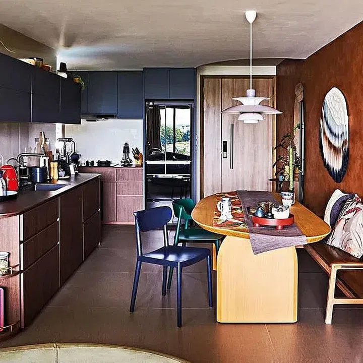 A 3-room open concept Bedok Reservoir condo with terracotta hues and curved lines
