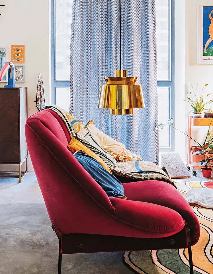 A couple embraces maximalism with bold colours, shapes, and textures in their three-room HDB flat.