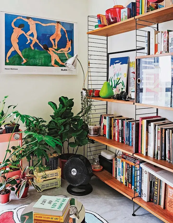 This move also created more room for the couple’s collection of arts, plants, books and vinyl records, primarily housed on the String shelves in the living area.