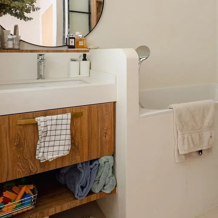 The couple’s design choices for their renovation were heavily inspired by their previous experiences. “Having lived in 3 different cities before purchasing our home, we naturally drew inspiration from our previous homes,” she shared. Joan recalled that they especially enjoyed using a pole system for cabinets in their home in the US, so they used the same setup in their Maisonette.